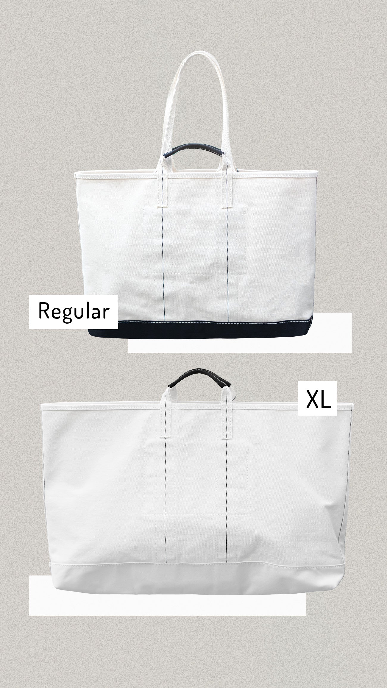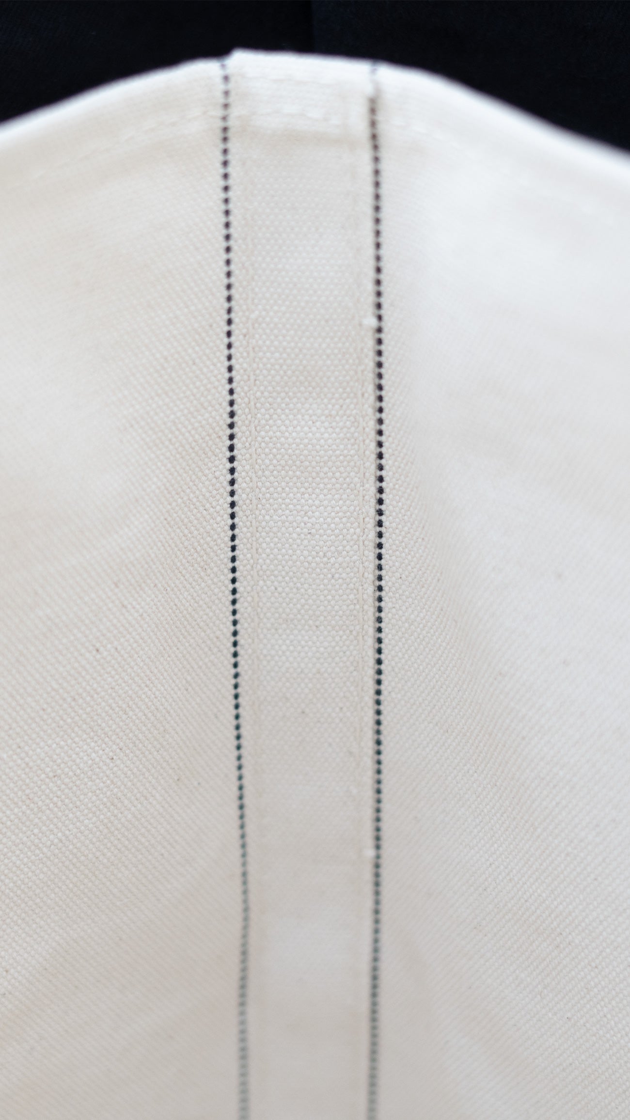 生成りの厚手キャンバスに、すっと伸びる黒の縁取り。